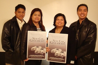 CONGRATULATIONS TO THE 2008 NEW CAR GIVEAWAY WINNERS! Talent Scout Winner: Lailane & James Rosales Dealer Winner: Rhoel & Maureen Coloma
